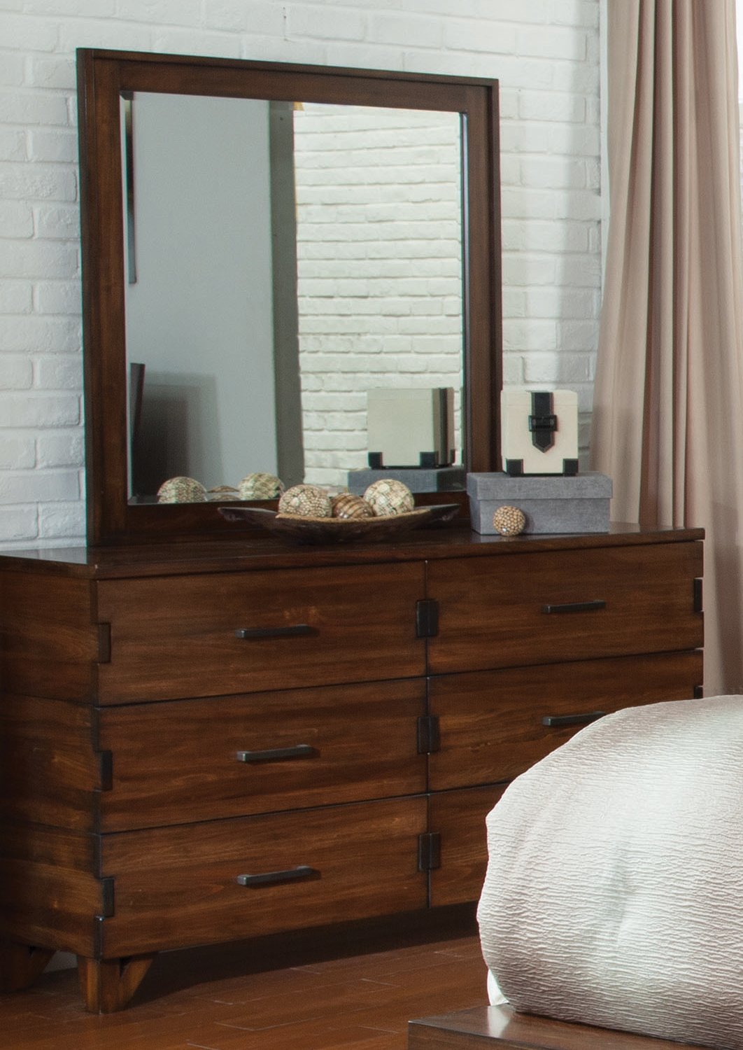 Contemporary design with a rustic feel. Exposed dovetail joinery. Nightstand with charging access. Clear sealer tinted drawers boxes. Black felt lining on all top drawers. Made of poplar wood and poplar veneer. Exposed finger joint on case fronts.